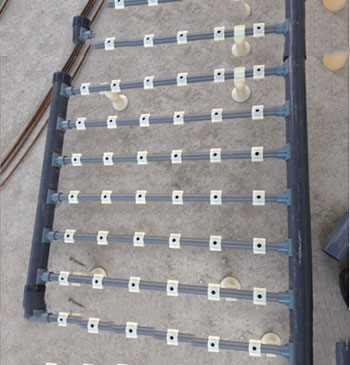裝配好后的單孔膜曝氣器安裝于濾磚和卵石層之上,膜片工作時根本不用擔心濾料的堆壓而影響其自由擴張,可安全的給附著于濾料上的微生物提供氧氣,其運行方式既可連續(xù)運行也可間歇運行。
