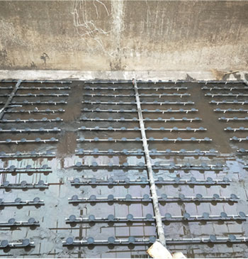 4、安裝曝氣器時,必須按設(shè)計要求的位置進(jìn)行,準(zhǔn)確無誤地用管道支架,在池底預(yù)埋鋼板,采用螺栓與支架連接,也可在池底打膨脹螺栓固定。