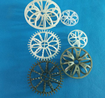 花環(huán)填料塑料花環(huán)填料早是由美國A.J.Teller于1954年研制開發(fā)出來的,因此也被稱作泰勒花環(huán)填料,是由12個小圓環(huán)按徑向排列而組成的大扁球體。適用于各種分離、吸收、脫吸裝置、常減壓裝置、合成氨脫碳、脫硫系統(tǒng)、乙苯分離、異辛烷/甲苯分離等